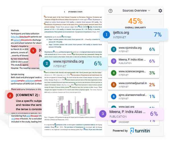 Khi phát hiện đạo văn, phần mềm sẽ chỉ ra nguồn gốc của các đoạn văn bị sao chép, bao gồm tên tác giả, tên bài viết, trang web, v.v.